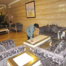 4、卧室及大厅保洁:用鸡毛掸子清除墙面上的尘土,擦拭开关盒、排风口、空调口、排烟置等。